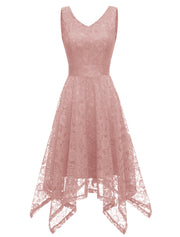 A-Line Cocktail Dresses Vintage Dress Party Wear Knee Length Sleeveless V Neck Lace with Pleats - Pink / US 2 / UK 6 / EU 32