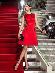 A-Line Elegant Dress Knee Length Sleeveless Satin with Beading Appliques