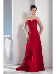 A-Line Evening Gown Elegant Dress Formal Sleeveless Chiffon Ruched Beading