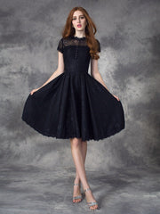 A-Line Lace Jewel Short Sleeves Knee-Length With Lace Dresses