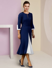 A-Line Mother of the Bride Dress Formal Wedding Guest Elegant Scoop Neck Length Stretch Chiffon Length Sleeve with Buttons - US 2 / UK 6 / EU 32