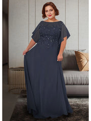 A-Line Mother of the Bride Dress Plus Size Elegant Jewel Neck Floor Length Chiffon Lace Half Sleeve with Appliques