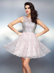 A-Line/Princess Bateau Beading Sleeveless Short Satin Cocktail Dresses