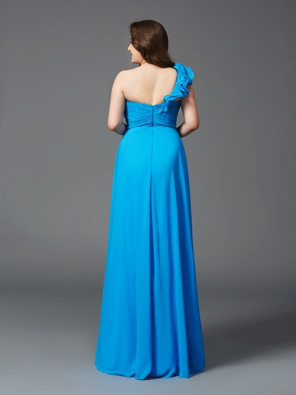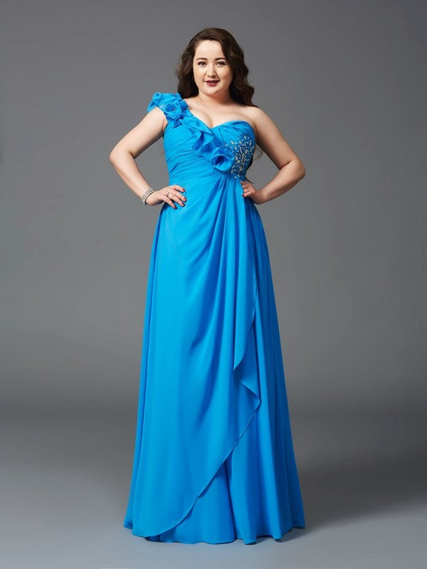 A-Line/Princess One-Shoulder Rhinestone Sleeveless Long Chiffon Plus Size Dresses