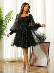 A-Line/Princess Ruffles Square Long Sleeves Knee-Length Dresses - US 2 / UK 6 / EU 32