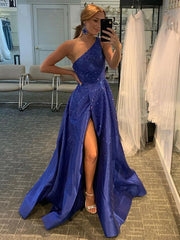 A-Line/Princess Satin Beading One-Shoulder Sleeveless Sweep/Brush Train Dresses