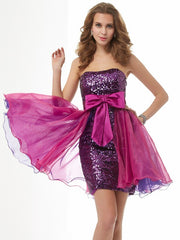 A-Line/Princess Strapless Sleeveless Bowknot Short Organza Homecoming Dresses