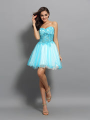 A-Line/Princess Sweetheart Applique Beading Sleeveless Short Satin Cocktail Dresses