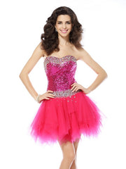 A-Line/Princess Sweetheart Beading Sleeveless Short Net Cocktail Dresses