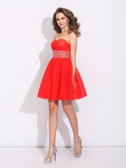 A-Line/Princess Sweetheart Rhinestone Sleeveless Short Net Dresses