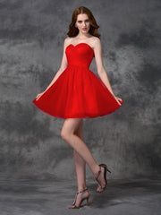 A-line/Princess Sweetheart Ruffles Sleeveless Short Net Cocktail Dresses