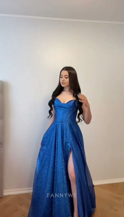 A-Line Shiny Straps Royal Blue Long formal dresses Bridesmaid Dresses evening gown Prom Dress