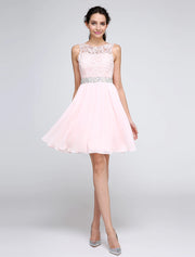 A-Line Special Occasion Dresses Party Dress Homecoming Graduation Short / Mini Sleeveless Illusion Neck Pink Dress Chiffon V Back Low Back with Crystals