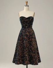 A-Line Tea Length Strapless Glitter Sequin Party Dress