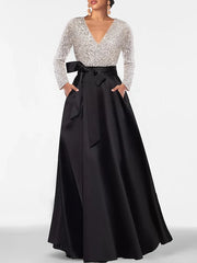 A-Line V-Neck Long Sleeves Floor-Length Mother Of The Bride Dresses
