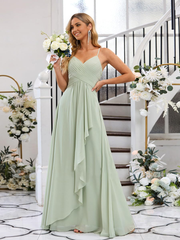 A-line V-Neck Spaghetti Straps formal dresses evening gown Prom Dress with Split