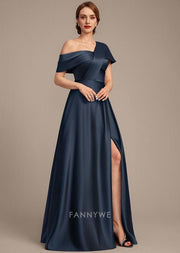 Elegant A-Line One Shoulder Short Sleeve Back Zip Floor-Length Side Slit Mother of the Bride Dress