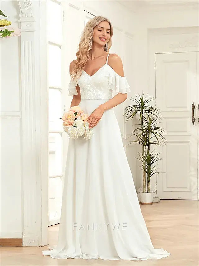 FannyWe Simple A-Line Quinceanera Dresses Elegant Dress Formal Wedding Floor Length Sleeveless Sweetheart Chiffon Backless with Pleats - US 2 / UK 6 / EU 32
