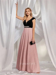 FannyWe Simple A-Line Quinceanera Dresses Elegant Dress Formal Wedding Floor Length Sleeveless V Neck Polyester V Back with Pleats