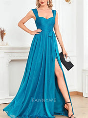 FannyWe Simple  A-Line Quinceanera Dresses Party Dress Wedding Wedding Guest Floor Length Short Sleeve Square Neck Polyester with Glitter
