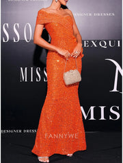 FannyWe Simple Mermaid / Trumpet Evening Gown Elegant Dress Wedding Wedding Guest Floor Length Sleeveless One Shoulder Sequined Lace with Ruffles - US 2 / UK 6 / EU 32