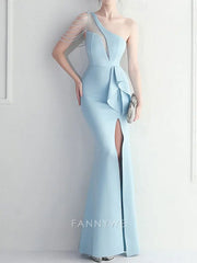 FannyWe Simple Mermaid / Trumpet Quinceanera Dresses Elegant Dress Wedding Wedding Guest Floor Length Sleeveless One Shoulder Polyester with Slit