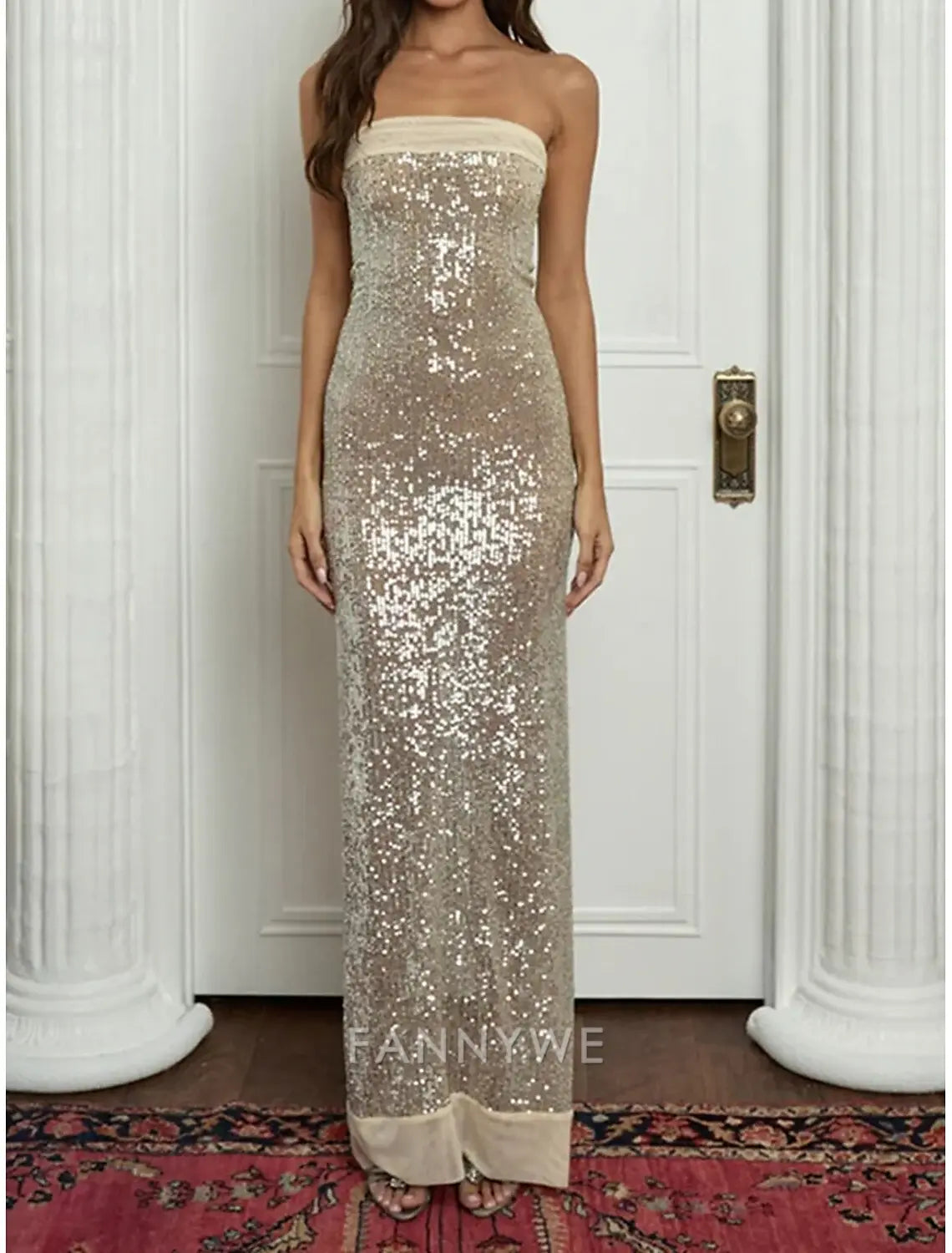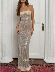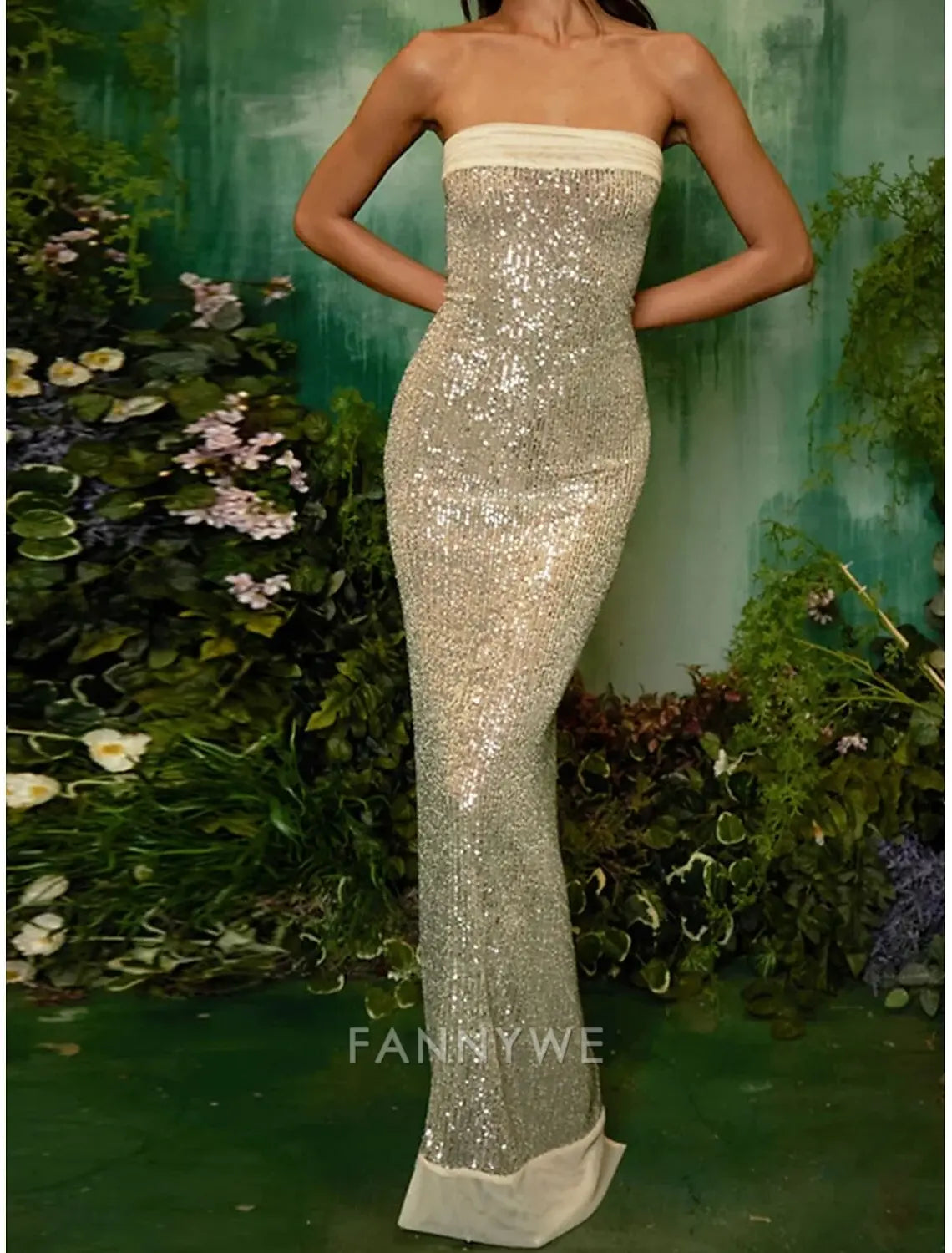 FannyWe Simple Mermaid / Trumpet Quinceanera Dresses Elegant Dress Wedding Wedding Guest Floor Length Sleeveless Strapless Tulle Backless with Sequin Slit - US 2 / UK 6 / EU 32