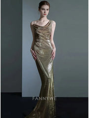 FannyWe Simple Mermaid / Trumpet Quinceanera Dresses Prom Dress Wedding Guest Floor Length Sleeveless Cowl Neck Polyester Backless