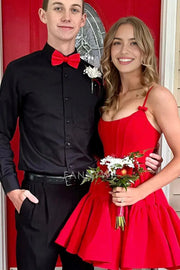 FannyWe Simple Red Corset Bodice Lace-Up A-Line Cocktail Dress with Ruffles formal wear dresses