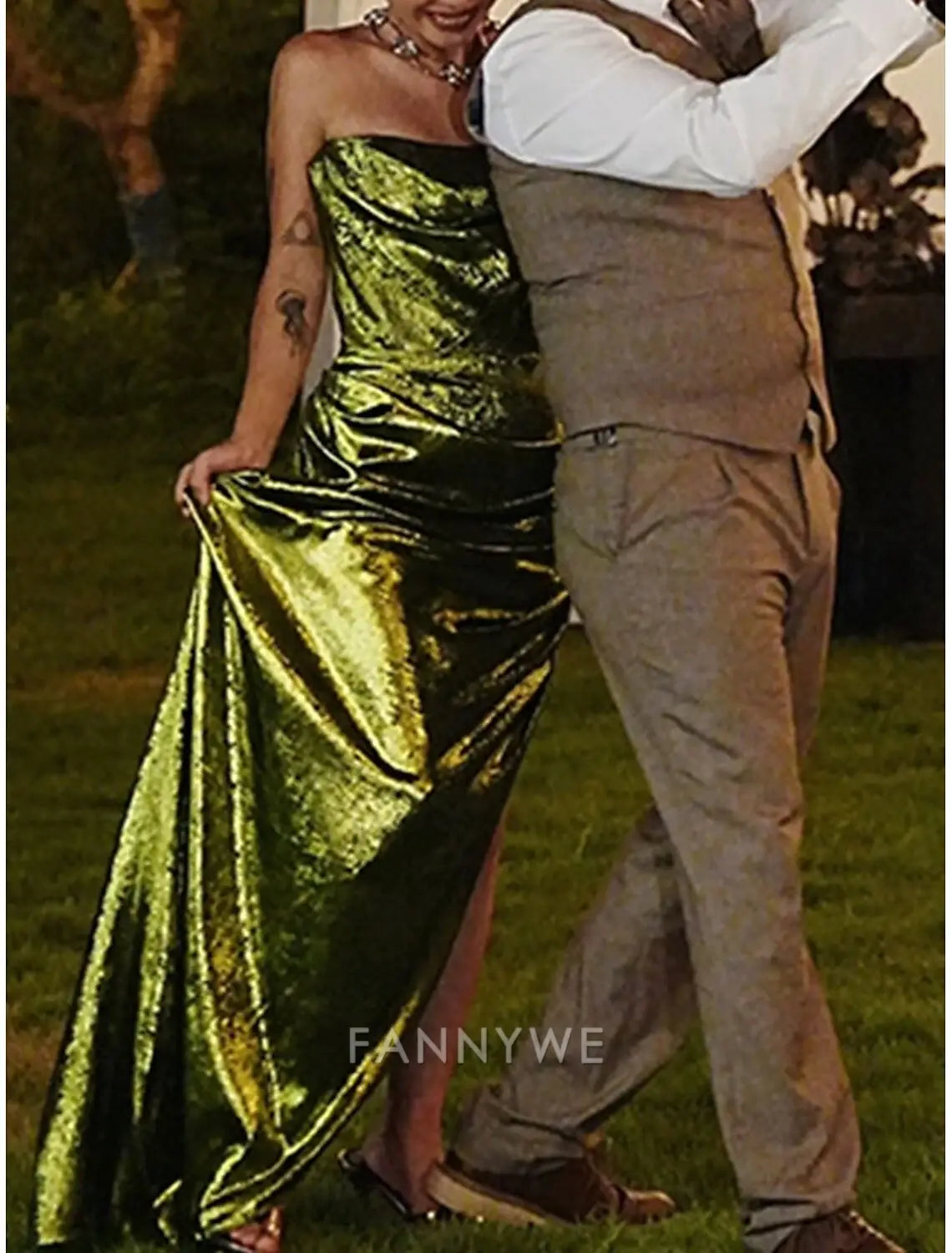 FannyWe Simple Sheath / Column Quinceanera Dresses Prom Dress Wedding Guest Floor Length Sleeveless Strapless Polyester Backless With Ruched Details and Slit