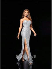 FannyWe Simple Silver Sequin Mermaid / Trumpet Quinceanera Dresses Sweetheart Neck Dress Wedding Guest Floor Length Sleeveless Strapless Backless - US 2 / UK 6 / EU 32