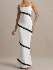 FannyWe Simple White Mermaid / Trumpet Prom Dresses Elegant Dress Semi Formal Wedding Floor Length Sleeveless Spaghetti Strap Stretch Crepe with Lace Appliques - US 2 / UK 6 / EU 32