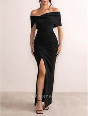 FannyWe Simple Women's Black Dress Prom Dress Party Dress Backless Split Off Shoulder Short Sleeve Wedding Guest Special Occasion Elegant Formal Black Red Summer Spring - US 2 / UK 6 / EU 32