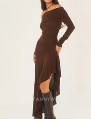 FannyWe Simple Women's Long Dress Maxi Dress Brown Dress Graduation Dress Prom Dress Party Dress Fashion Party Evening Party Regular Fit Plain Long Sleeve Off Shoulder Black White Brown Summer - US 2 / UK 6 / EU 32
