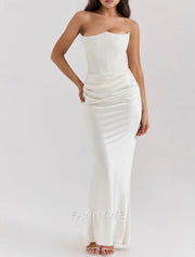 FannyWe Simple Women's Long Dress Maxi Dress White Dress Graduation Dress Prom Dress Party Dress Elegant Fashion Party Special Occasion Evening Party Regular Fit Plain Sleeveless Strapless Black White Pink Red