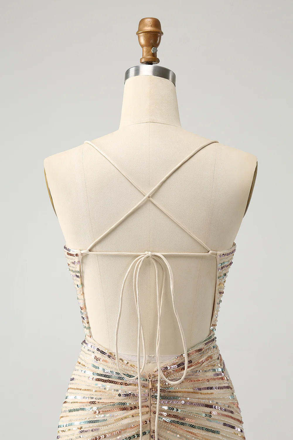 Glitter Spaghetti Straps Tight Short Homecoming Dress with Sequins