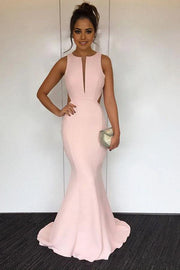 Mermaid Round Neck Sweep Train Pearl Pink Open Back formal dresses evening gown Prom Dress
