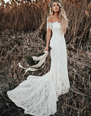 Mermaid Scoop Short Sleeves Lace Wedding Dress