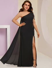 Plus Size Curve Mother of the Bride Dress Wedding Guest Party Sexy One Shoulder Floor Length Chiffon Sleeveless with Beading Split Front - US 2 / UK 6 / EU 32