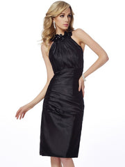 Sheath/Column Bateau Sleeveless Applique Short Woven Satin Homecoming Dresses