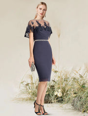 Sheath / Column Cocktail Dresses Convertible Infinity Dress Wedding Guest Cocktail Party Knee Length Short Sleeve Strapless Lace with Lace Insert Appliques - US 2 / UK 6 / EU 32