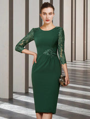 Sheath / Column Mother of the Bride Dress Elegant Jewel Neck Short / Mini Chiffon Lace Long Sleeve with Sash / Ribbon Appliques