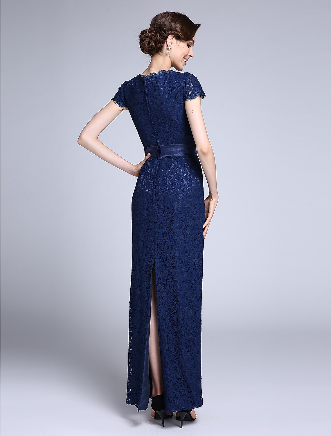 Sheath / Column Mother of the Bride Dress Furcal V Neck Ankle Length Lace Short Sleeve No with Lace Bow(s) - US 2 / UK 6 / EU 32