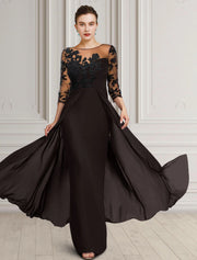 Sheath / Column Mother of the Bride Dress Wedding Guest Elegant Jewel Neck Floor Length Chiffon Lace 3/4 Length Sleeve with Appliques