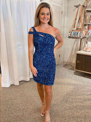 Sheath/Column One-Shoulder Sleeveless Short/Mini Dresses - Royal Blue / US 2 / UK 6 / EU 32