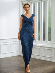Sheath/Column Ruched V-neck Sleeveless Floor-Length Mother of the Bride Dresses