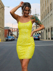 Sheath/Column Sequins Spaghetti Straps Sleeveless Short/Mini Dresses