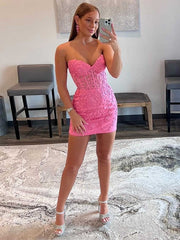 Sheath/Column Tulle Applique Sweetheart Sleeveless Short/Mini Dresses