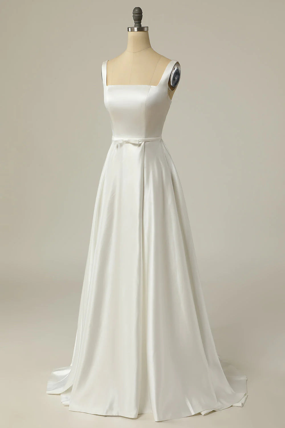 Simple A Line Square Neck White Long Wedding Dress