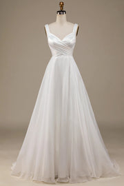 Simple Ivory Organza Scoop Neck Sweep Train Wedding Dress